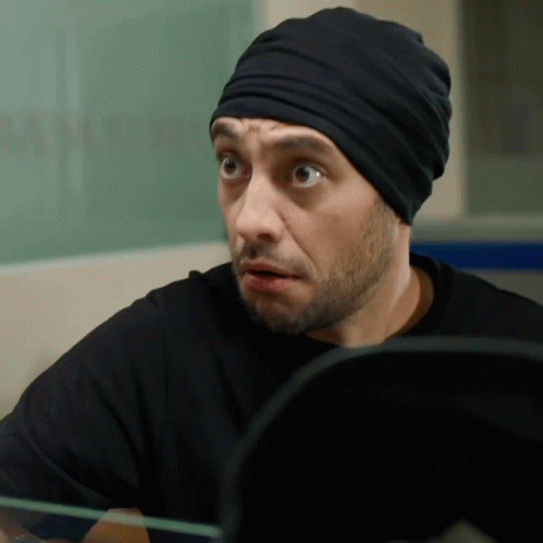 Alfonso Borbolla looks incredibly surprised with wide eyes and a black turban.