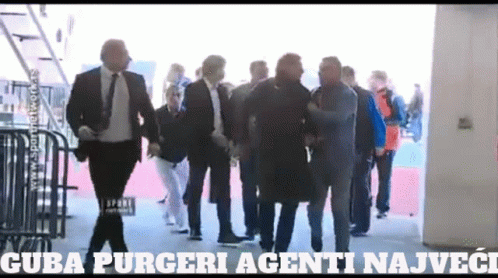 A group of men, including Zdravko Mamic, walking in a hallway with the caption 'Guba Purgeri Agents the Biggest'.
