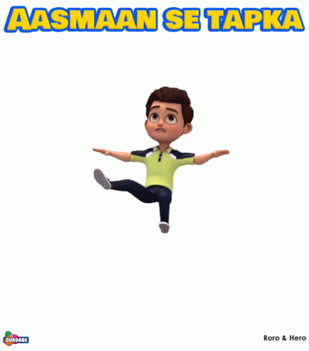 Roro from Gubbare Rorohero cartoon floats with the text 'Aasmaan Se Tapka' (Fell from the Sky).