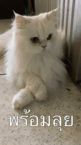 Guccigoogle, the fluffy white cat, is ready for action with 'พร้อมลุย' (Ready to go) caption.
