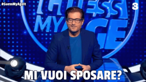 Enrico Papi asks 'Do you want to marry me?' during the Italian game show Guess My Age.