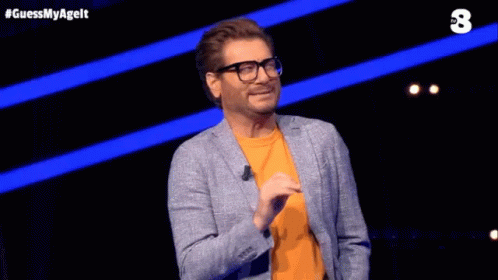 Enrico Papi reacts with 'Che Dolore' (What Pain) on the show Guess My Age.