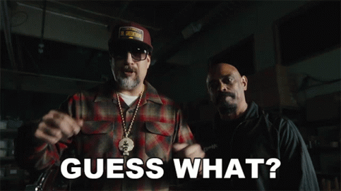 Cypress Hill members B-Real and Sen Dog in a music video, with one pointing and saying 'Guess What?'