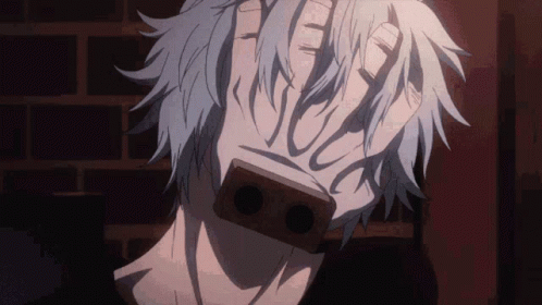 Guilherme Ferraz as Shigaraki Tomura from My Hero Academia covers his face, then reveals an eye while holding a picture.