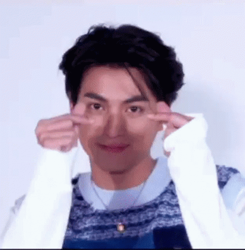 Gulfkanawut charmingly makes finger hearts and blows a kiss, surrounded by animated red hearts.