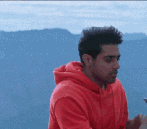Guri Jatt Brothers in a red hoodie, smiling against a mountain backdrop.