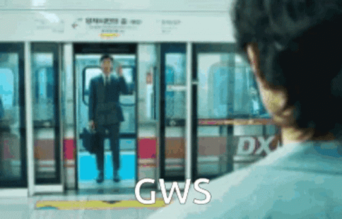 Gong Yoo, known for Squid Game, stands in front of a train with 'GWS' text, a memorable scene.
