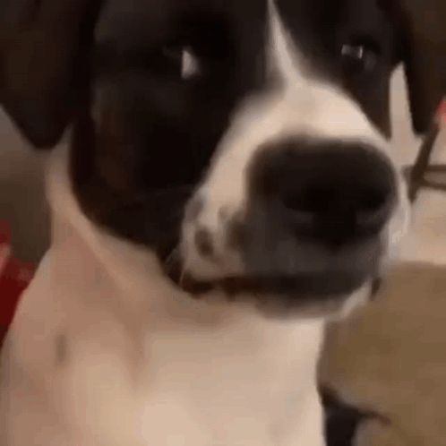 H2di, a black and white dog, looks at the camera with a funny, disgusted expression and a side-eye.