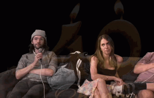 Ethan Klein celebrates his 40th birthday, seen holding a microphone with birthday candles and cake.