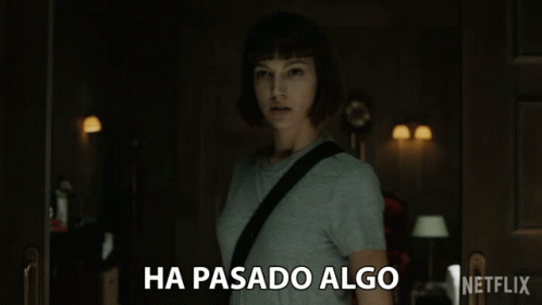 Úrsula Corberó as Tokyo from Money Heist, looking worried and saying 'Ha Pasado Algo' (Something Happened).