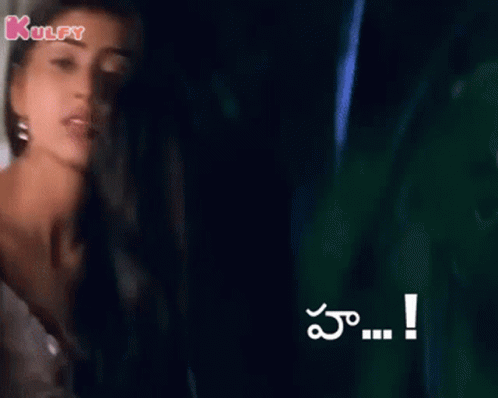 Shriya Saran from the movie Nuvve Nuvve reacts with an exclamation, captured in a close-up shot.
