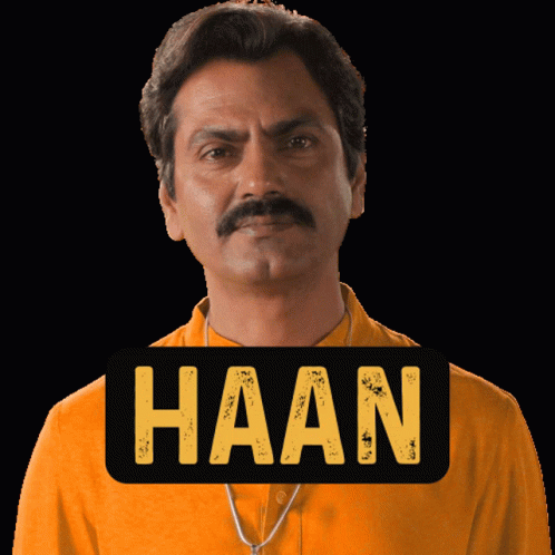 Nawazuddin Siddiqui as Ganesh Gaitonde from Sacred Games says 'Haan' (Yes) in an orange shirt.