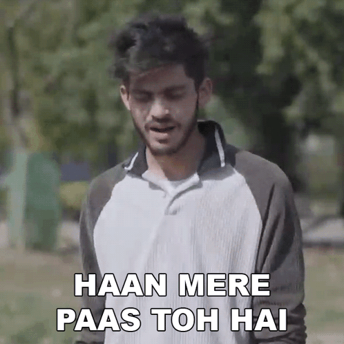 Sumit Bhyan says 'Haan Mere Paas Toh Hai' while standing in a park.