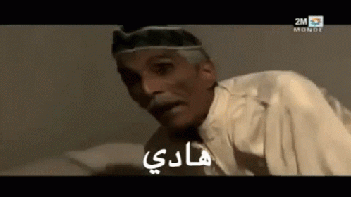 A man in traditional attire with a mustache and cap, with Arabic text 'Rah' visible in the background.