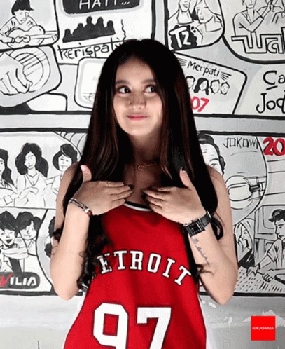 Sella Selly2Tik Tok poses happily in a red Detroit jersey with the number 97, smiling for the camera.