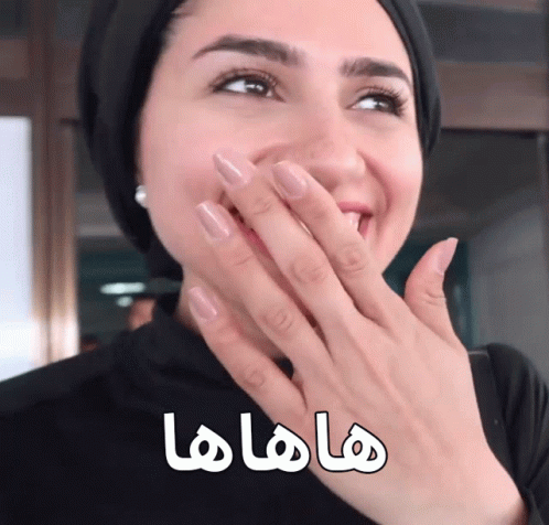 Zainab Al Eqabi laughing heartily with 'hahaha' text overlaid.