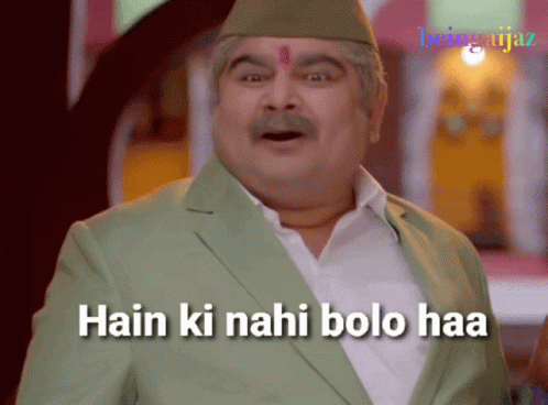 Anna in a green suit delivers the popular 'Hain Ki Nahi Bolo Haa' meme phrase with a funny expression.