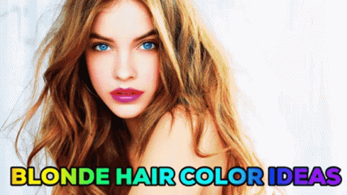 Explore various blonde hair color ideas featuring a woman with striking blue hair, red eyes, and green lips.