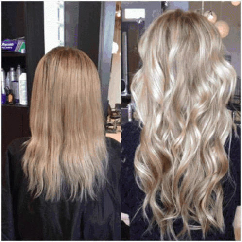 Women showcase beautiful long, wavy hair and various hair extensions.