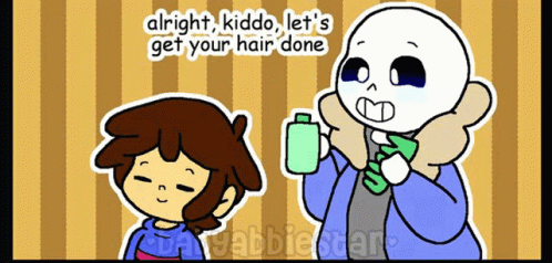 Sans helps Frisk with various hairstyles, from pigtails to spiky hair, in a cute Undertale animation.