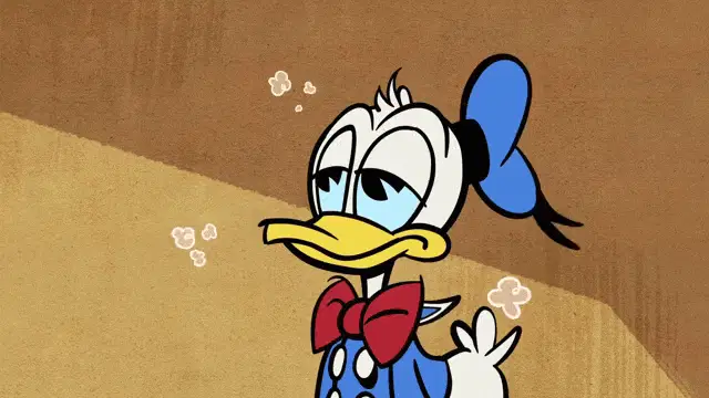 An older woman struggles comically to blowdry her hair, making exaggerated expressions.