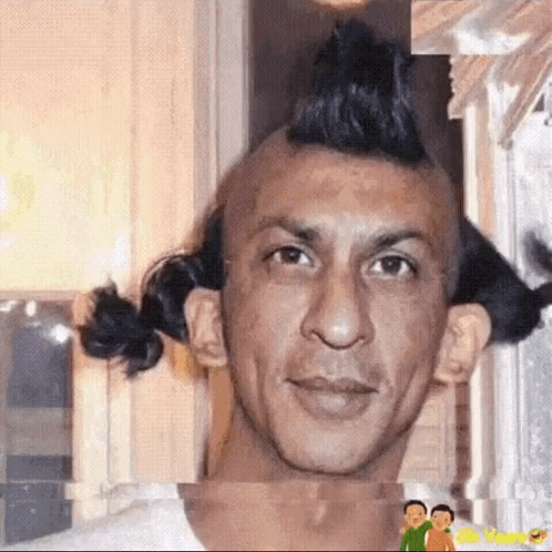 Shah Rukh Khan featured in a compilation of humorous and unusual meme-style looks and hairstyles.
