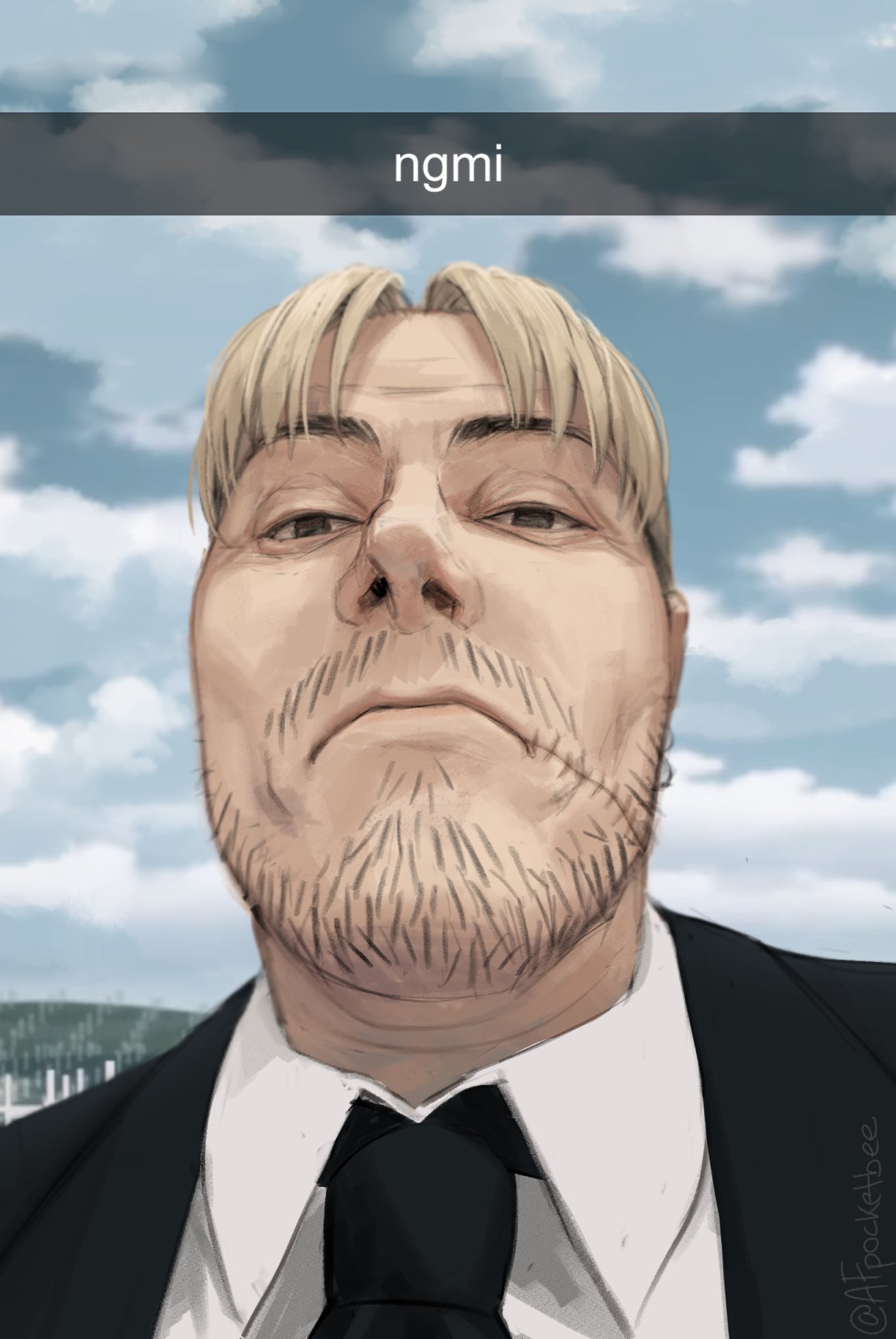 a cartoon of a man with a beard holding a red sword