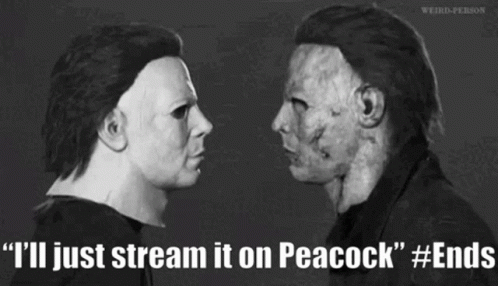 Michael Myers faces off with himself in a meme about streaming 'Halloween Ends' on Peacock.