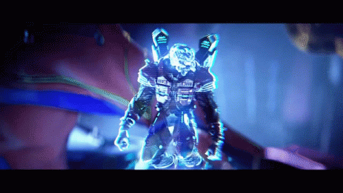 The Arbiter, a holographic figure from Halo 2 Anniversary, glows brightly with blue light.