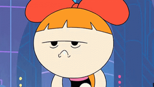 Blossom from The Powerpuff Girls looks tired, bored, and hungry, drooling with her mouth open.