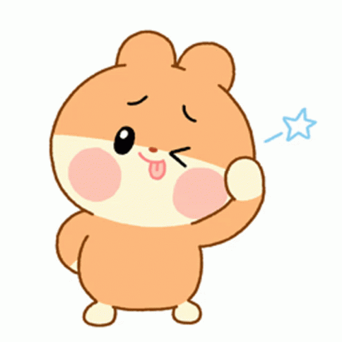 Hamdong the hamster winks playfully with its tongue out, looking a bit embarrassed.