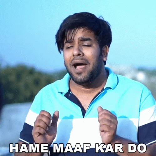 Yogesh Kathuria apologizes with 'Hame Maaf Kar Do' gesture, holding ears in a plea for forgiveness.