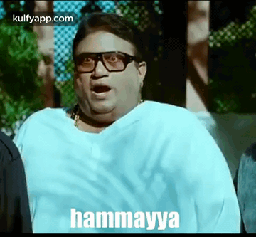 Jayaprakash Reddy makes a funny face, exclaiming 'Hammayya' in relief, wearing glasses and a white shirt.