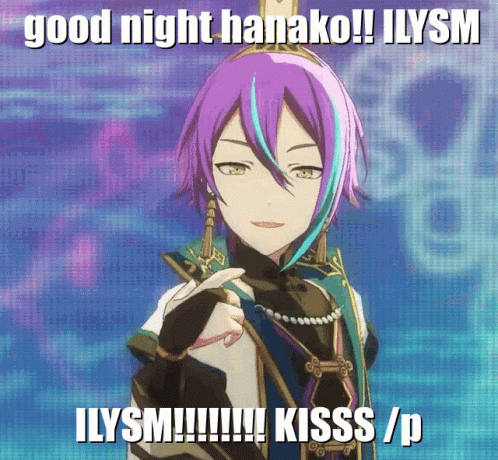 Rui sends a heartfelt good night message to Hanako, expressing deep affection with 'ILYSM' and a kiss.