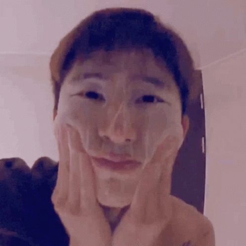 Hanbin Kimhanbin, also known as B.I, makes funny faces while wearing a face mask, playfully stretching his skin.