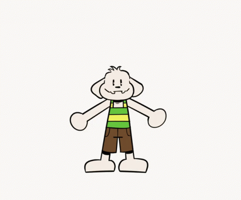 Asriel Dreemurr transforms from a sad, crouching goat to a cheerful, smiling character with a hand raised.