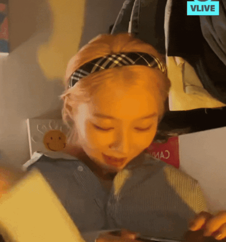Handong from Dreamcatcher shows an annoyed or exasperated reaction during a VLIVE broadcast, looking at her phone.