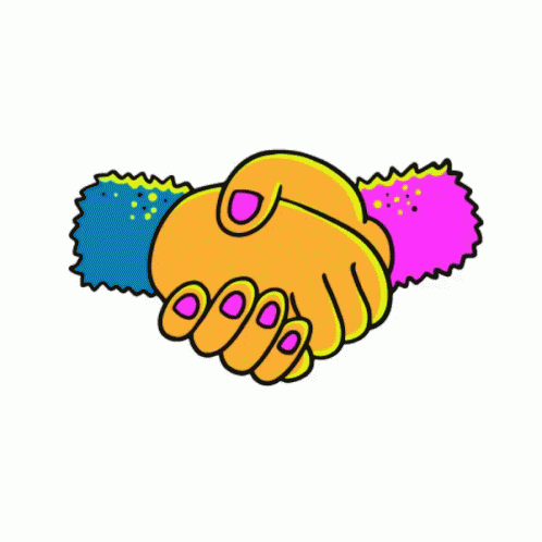 A colorful animated illustration of two hands shaking, symbolizing unity and agreement, often associated with the Youth Olympic Games.