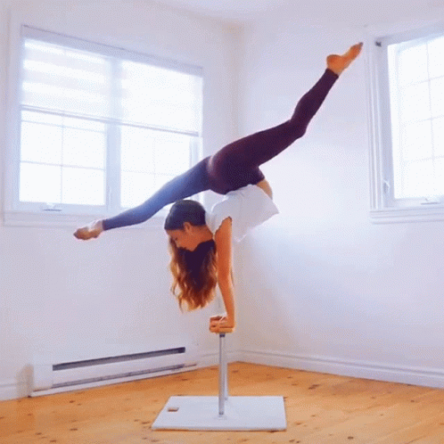 A skilled contortionist showcases incredible flexibility with a stunning handstand on canes, balancing gracefully.