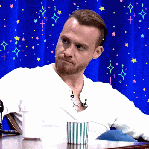 Kerem Bursin sits at a table, looking thoughtful with a subtle smirk, holding a white cup.