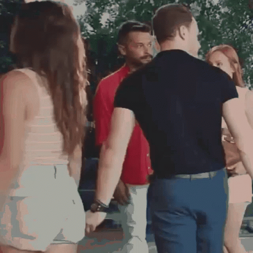 Edser and Hanker walk hand-in-hand, with another couple in the background. A romantic moment.