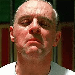 Hannibal Lecter with eyes closed, chewing slowly, from Silence of the Lambs, portraying a pensive mood.