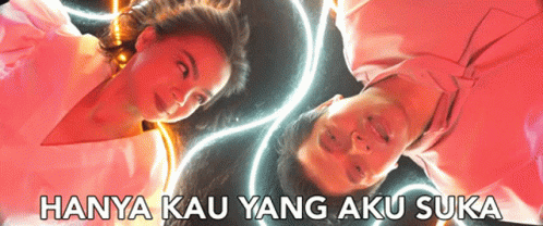 A man and a woman float amidst glowing lines, expressing love with the song 'Hanya Kau Yang Aku Suka'.