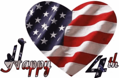 Heart-shaped American flag with fireworks, celebrating Happy 4th of July.