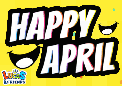 A cheerful 'Happy April' message featuring the Lucas & Friends logo on a bright yellow background.