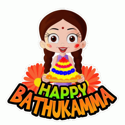 Chutki from Chhota Bheem celebrates Happy Bathukamma, holding a beautiful flower arrangement.