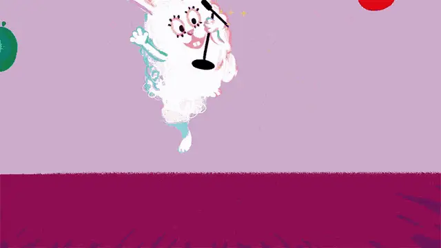 A vibrant speech bubble with 'Happy Birthday' text, surrounded by colorful confetti and streamers on a yellow background.