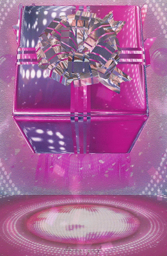 A vibrant, shiny pink gift box with a silver bow, featuring animated 'Happy B-Day' text.