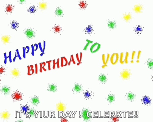 Animated birthday greeting with colorful balloons and the message 'Happy Birthday! It's your day! Celebrate!'