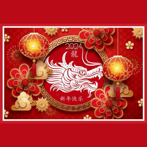 Celebrate the 2024 Chinese New Year, the Year of the Dragon, with this festive greeting card featuring lanterns and traditional motifs.